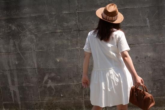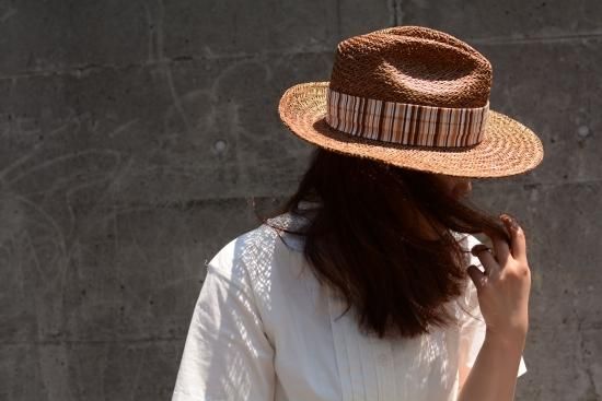 ハットストライプリボン つば広 ストローハット ブラウン (USED&VINTAGE) ¥2,200(TAX IN)【SOLD OUT】