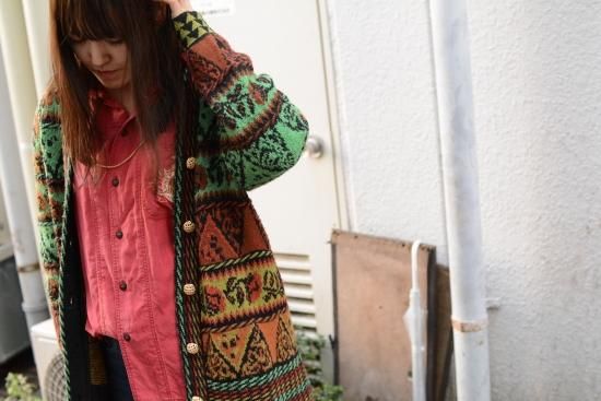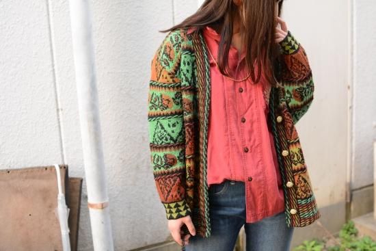 カーディガン★Vintage イタリア製 総柄 金ボタン ニット カーディガン (レディース古着) ¥3,300(TAX IN)【SOLD OUT】