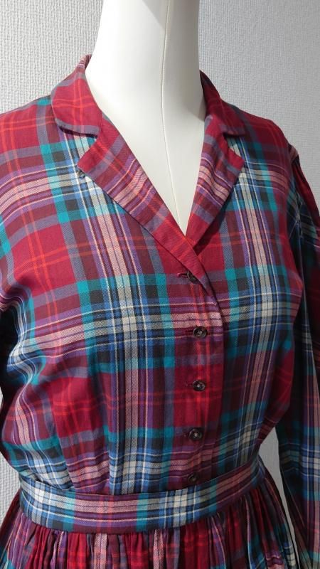 90’s Ralph Lauren チェック柄 オープンカラー シャツワンピース サイズ9 (VINTAGE)