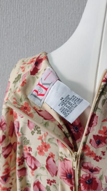 80-90’s R&K Originals “100% Rayon” 花柄 ワンピース サイズ14