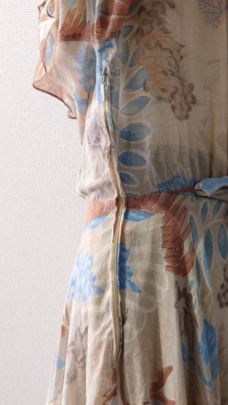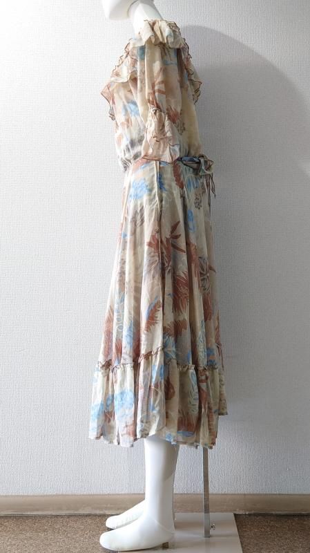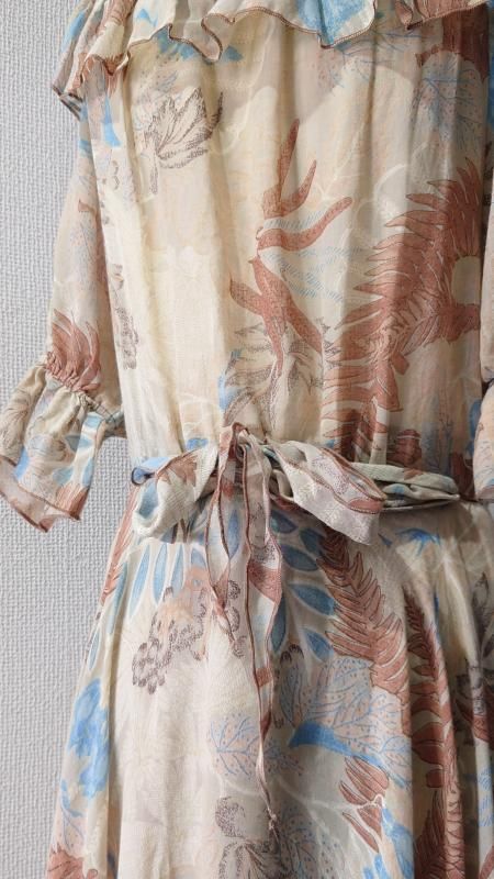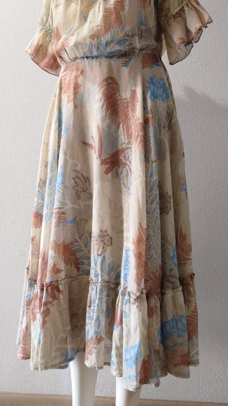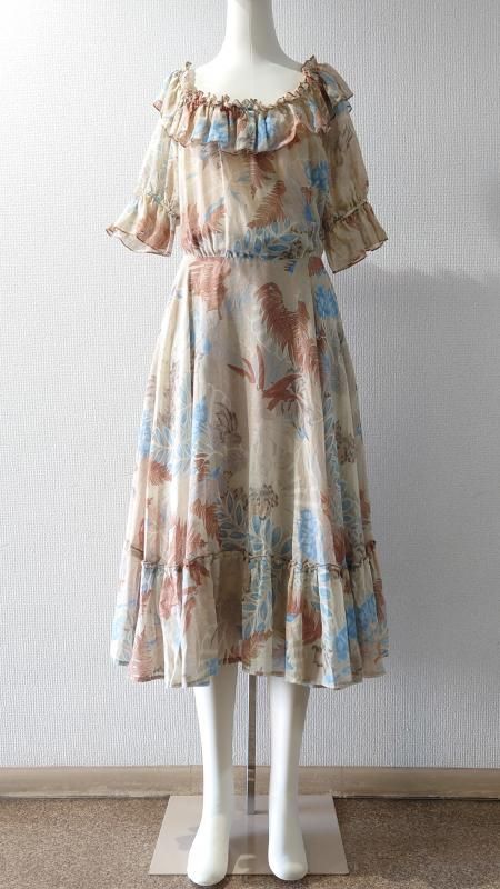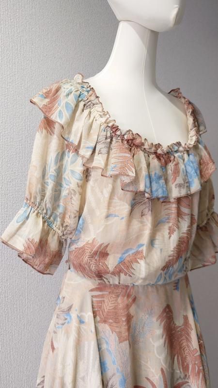 EU Vintage “Botanical Pattern” オフショルダー フリルワンピース サイズ38 (VINTAGE)