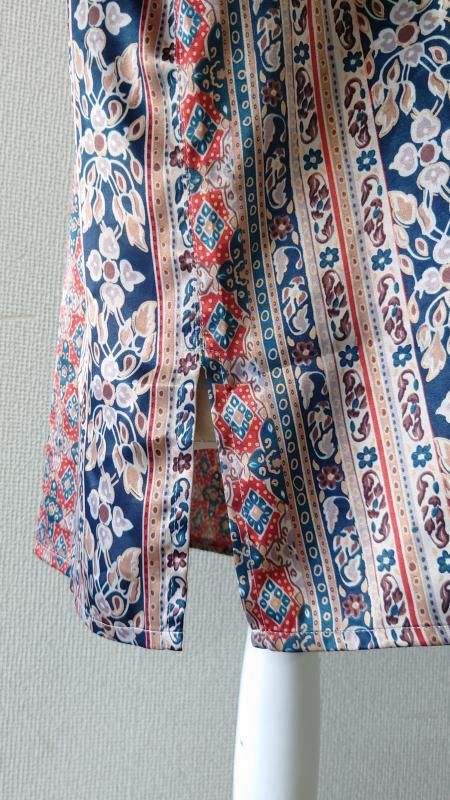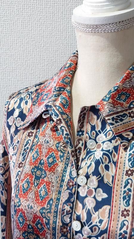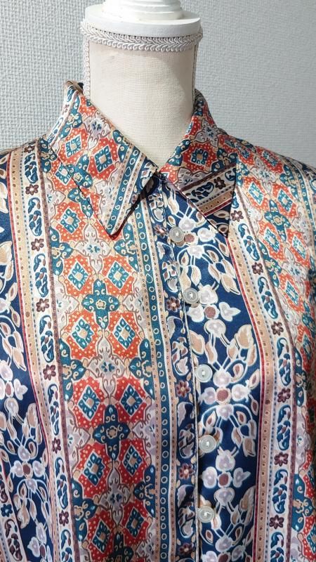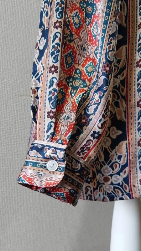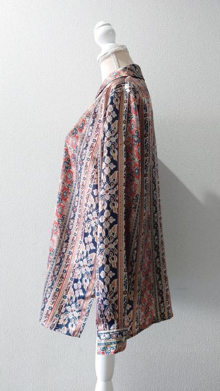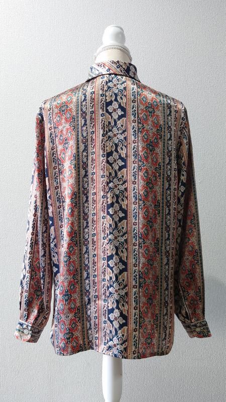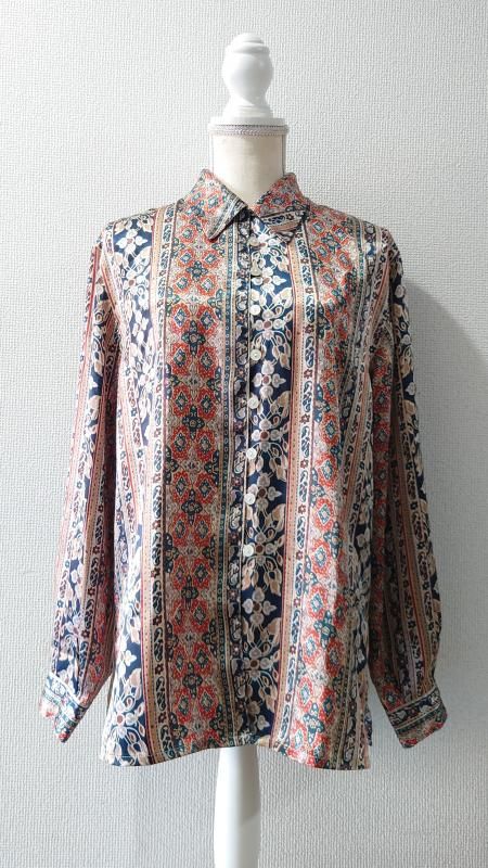 Elspia 総柄 シルクシャツ L (USED)