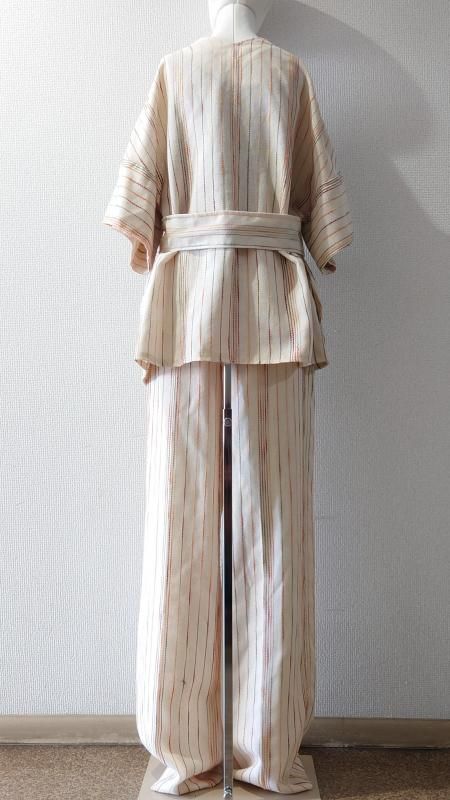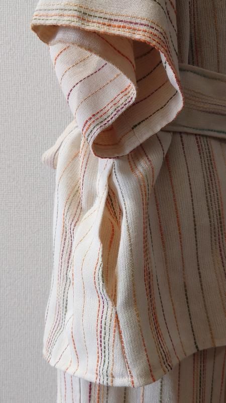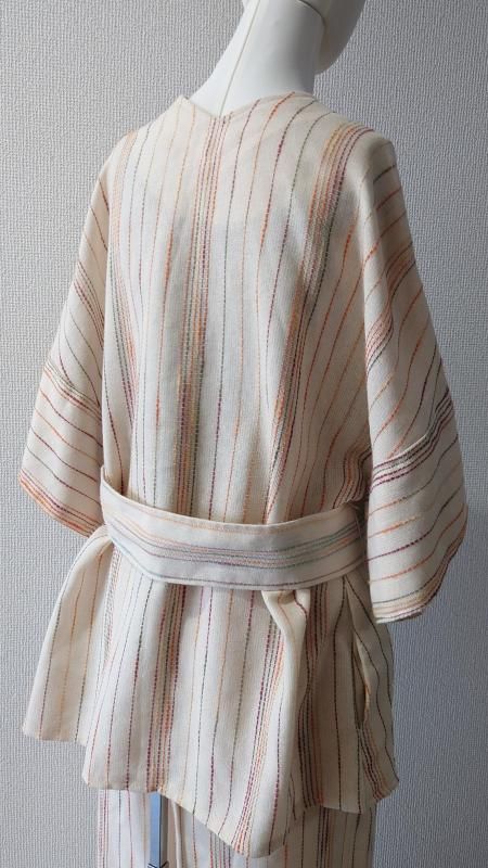 通気性の良いドライタッチな生地に毛糸によるマルチストライプが織り込まれたオリエンタルなグッドデザイン