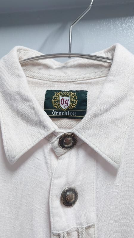 EU Vintage OS Trachten “Cotton×Linen” ヘリンボーン チロリアンシャツ M (VINTAGE)