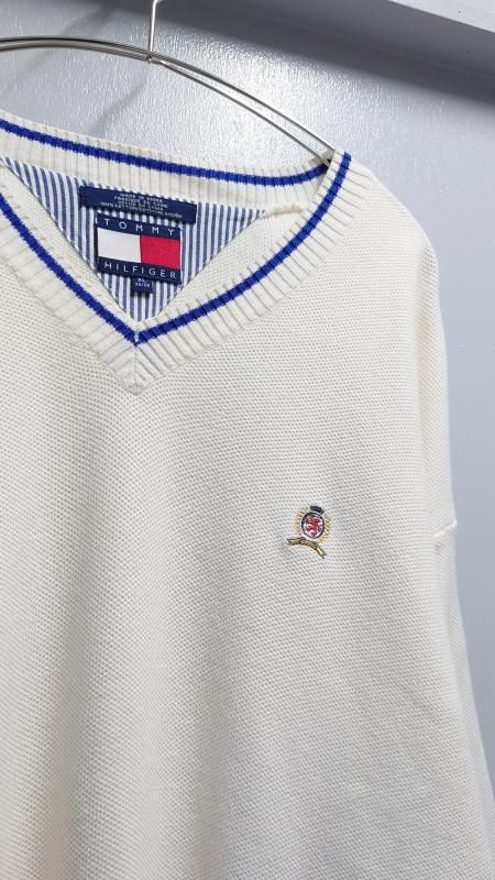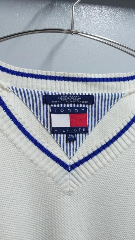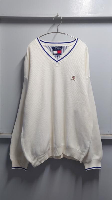 90’s TOMMY HILFIGER リブライン Vネック コットンニットセーター XL