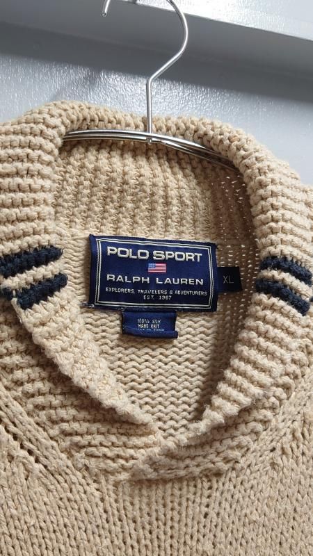 90’s POLO SPORT RALPH LAUREN “HAND KNIT” ショールカラー シルクセーター XL