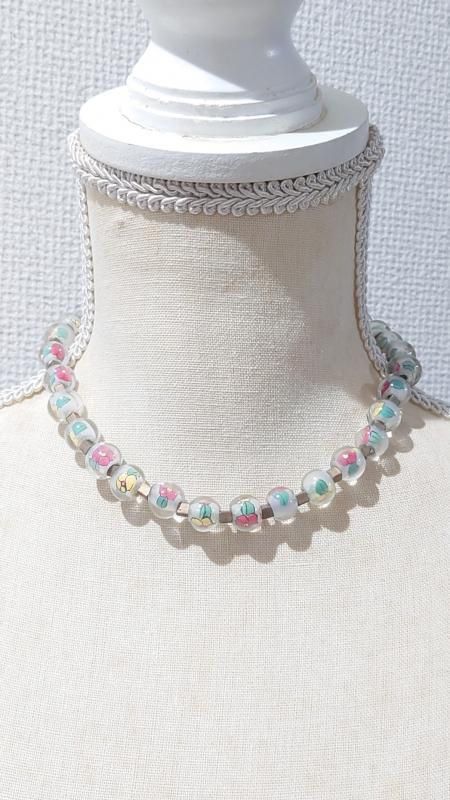 色とりどりのお花がとってもかわいいビーズネックレス♡