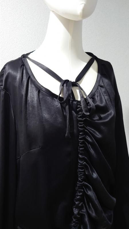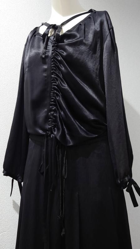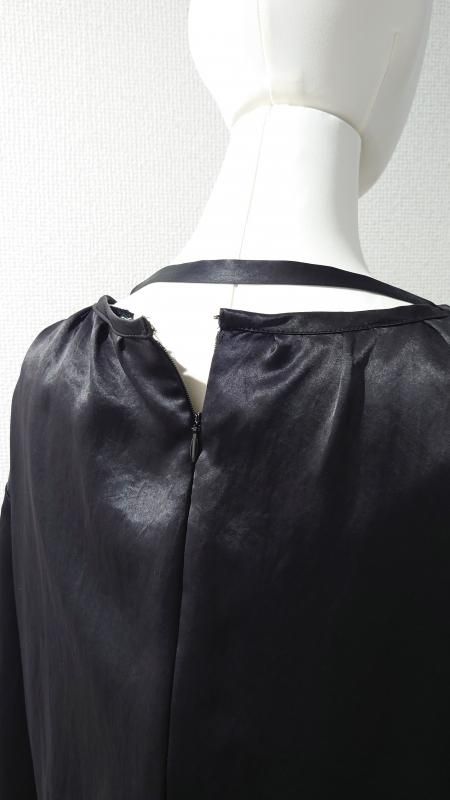 なめらかで上品な光沢のあるシルキーな生地との相乗効果によりドレッシーでモードな仕上がりに!