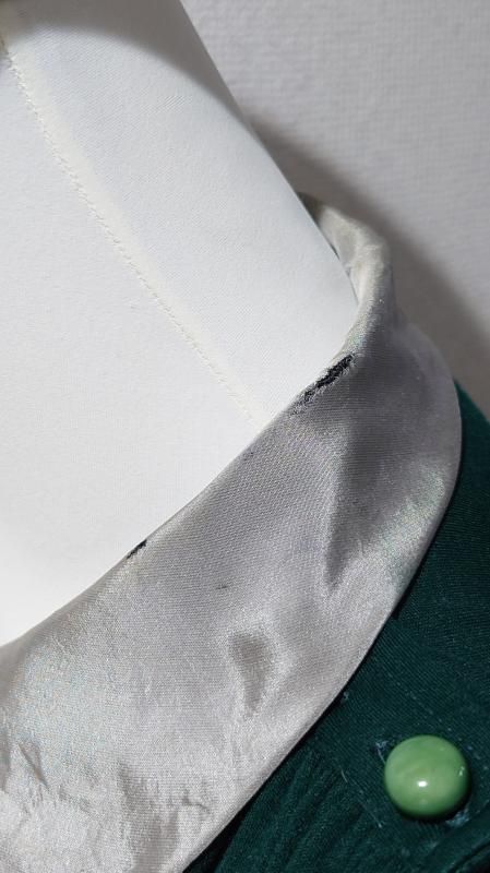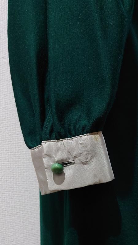 状態:襟に若干の黄ばみやリペア、袖先に細かいシミ、付属のベルトの芯地に折れ目がありますが使用には問題ないかと思います、その他ワンピース本体には目立つ汚れやダメージなどなく良好です。