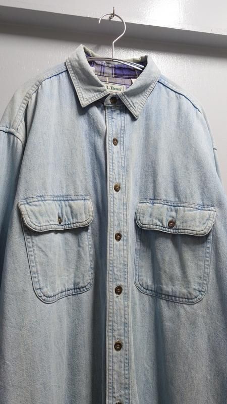 90’s L.L.Bean カナダ製 裏地フランネル デニムシャツ M