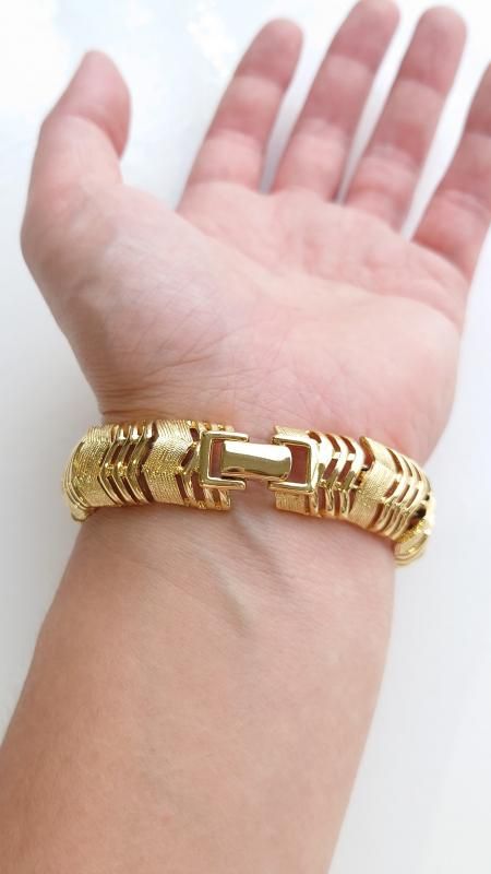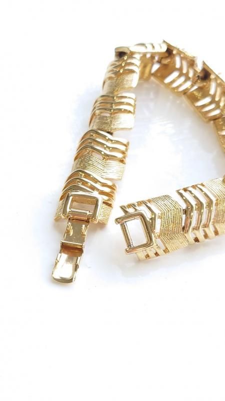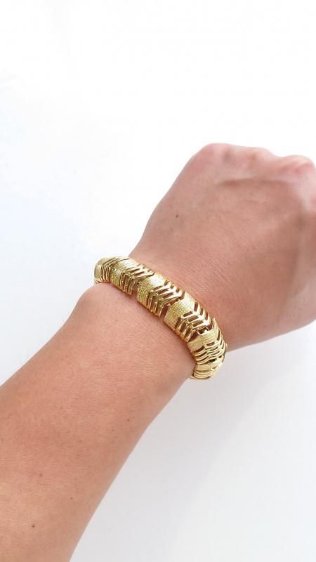 ヘリンボーン調のメタルパーツが煌びやかに連なるラグジュアリーなブレスレット!