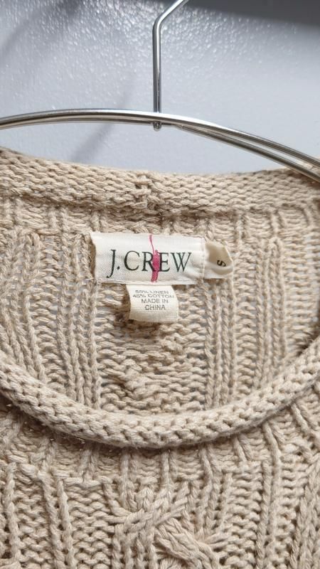 90’s J.CREW “Cotton×Linen” ロールネック ケーブルニットセーター S (VINTAGE)