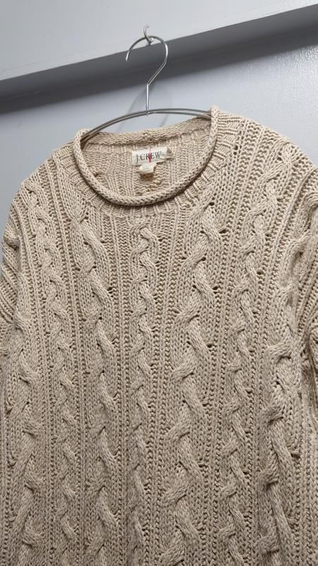 90’s J.CREW “Cotton×Linen” ロールネック ケーブルニットセーター S