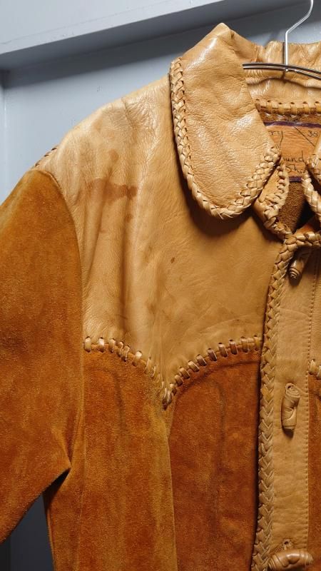 ヒッピームーブメント全盛の70年代ならではといえる鋭角的なウェスタンパターンのヴィンテージレザージャケット!
