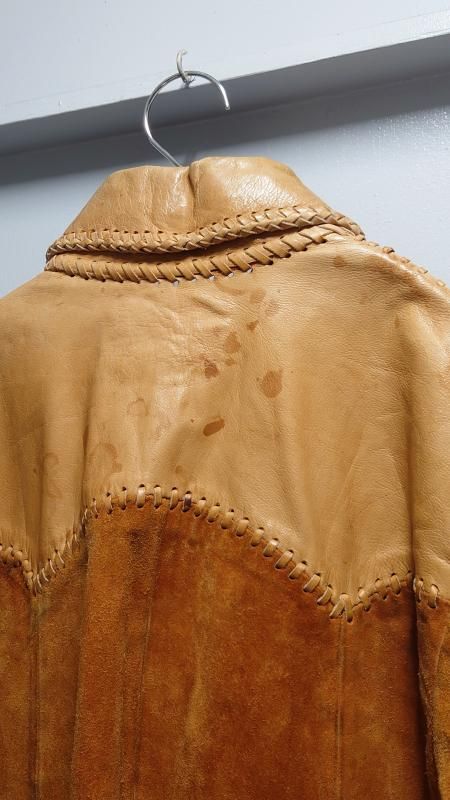 状態:肩のヨークや袖先の表革部分にシミ、身頃と袖のスウェード部分に部分的なスレ汚れがあります。