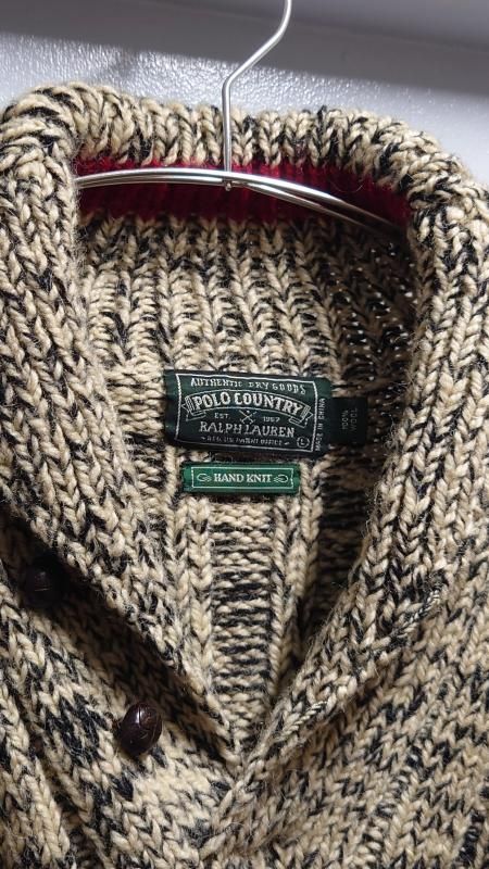 90’s POLO COUNTRY RALPH LAUREN ミックスカラー ハンドニット ショールカラーセーター L