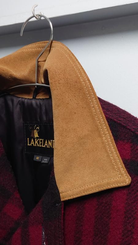 80-90’s LAKELAND USA製 襟レザー ウールジャケット サイズ40 アメリカ製