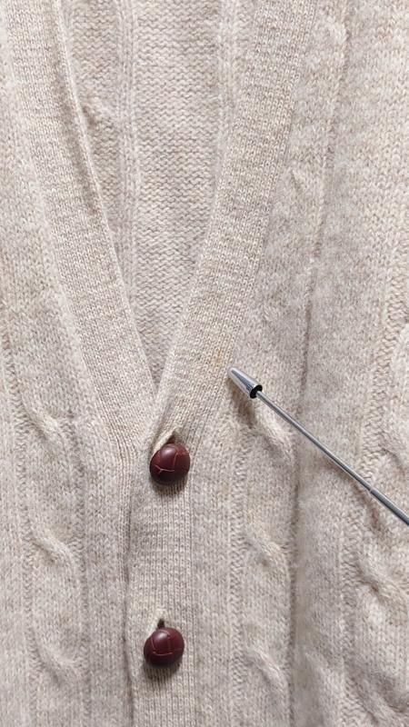 上品でクラシカルなケーブル編みとくるみボタンの相性も◎