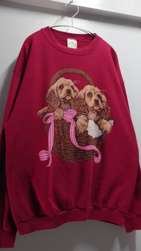 90’s Cotton Grove USA製 “Cocker Spaniel” Dog Print Sweatshirt L (VINTAGE)