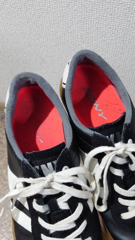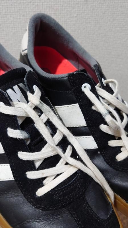 状態:履き皺、アッパーの白いライン部分にひび割れ、ソールに若干の汚れ、シューレースに黒い汚れ、インソールに使用感があります。