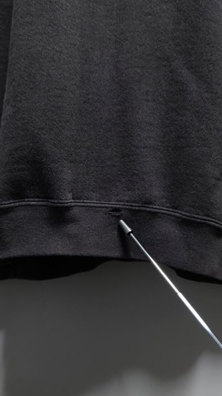 状態:全体的に程よく色褪せ、フロントの裾リブに小穴(生地が重なっている部分なので貫通はしていません)があります。