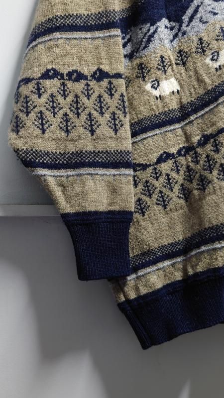 80-90’s Colonial Concepts ニュージーランド製 “Sheep” ウール ニットカーディガン L