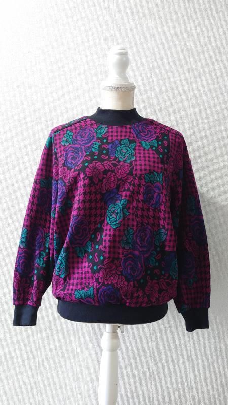 EU Vintage “Rose Pattern” グリッターニット セーター M (VINTAGE)